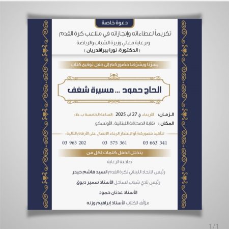 يوقع عند الخامسة من عصر اليوم في نقابة الصحافة اللبنانية كتابة مسيرة شغف للكاتب الزميل إبراهيم وزنة ، وفيه شهادات بحق أحد ايقونات الرياضة وكرة القدم اللبنانية المرحوم الحاج محمود حمود.