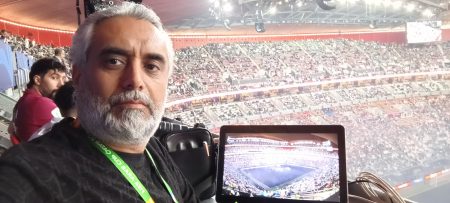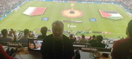 “تعودنا في الحكايات أن تفتح بمطلع، وأن تنساب بوسط، وأن تختم بنهاية، غير أن حكاياتنا هذه لا ختام لها، تبدأ وتنتهي من حيث بدأت، تدور كما تدور الرحى على نفسها، دائرة لا تنتهي وتبدأ بنداء”، بهذه الكلمات المعبرة مزج راوي الحفل الفنان السوري رشيد عساف بصورة بليغة حال القضية الفلسطينية التي لا نهاية لها، بمتعة كأس العرب وكرة القدم العربية التي لا تنتهي أبدا.