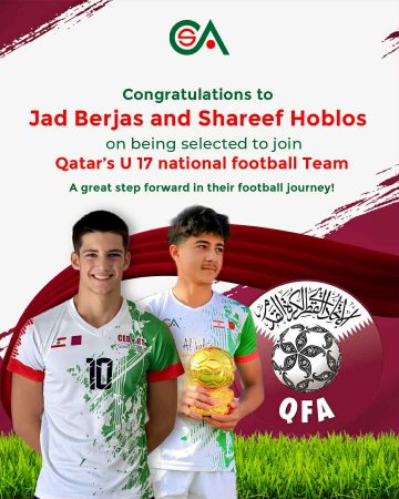 في إنجاز يُضاف إلى سجلّ النجاحات التي تحققها الجالية اللبنانية في قطر، أعلنت أكاديمية سيدارز الرياضية عن انضمام اثنين من أبرز لاعبيها، جاد برجاس وشريف حوبلص، إلى صفوف المنتخب القطري الوطني لكرة القدم تحت 17 سنة.